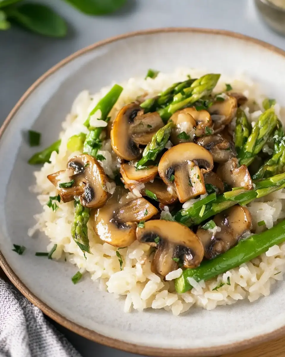 PrintReispfanne mit Pilzen und grünem Spargel – Einfach & Aromatisch